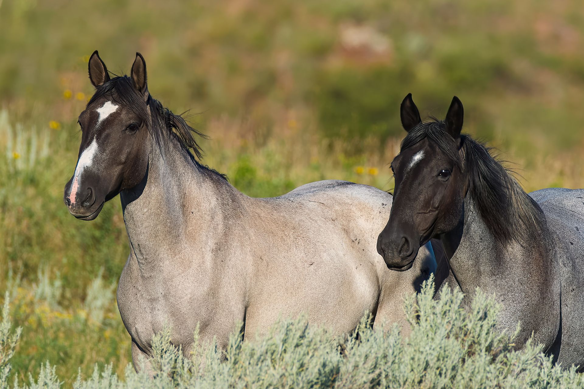 Many years ago when I started my professional photography career, I wanted to be a bird photographer. That is until I realized birds don't buy bird portraits and neither do many people. Even though I did sell a few (to people) and my highest selling print of all times is one of a whooping crane, I decided I'd better expand to other things. So, I began shooting other forms of wildlife. After moving the the Black Hills of South Dakota, I began shooting a lot of wildlife native to the area: mountain goats, big horn sheep, bison, antelope, prairie dogs, and wild horses. My favorites are the wild horses of Theodore Roosevelt National Park in North Dakota. Beautiful creatures in a beautiful environment. It turns out that my next highest selling print is one of those horses "King of the Badlands."